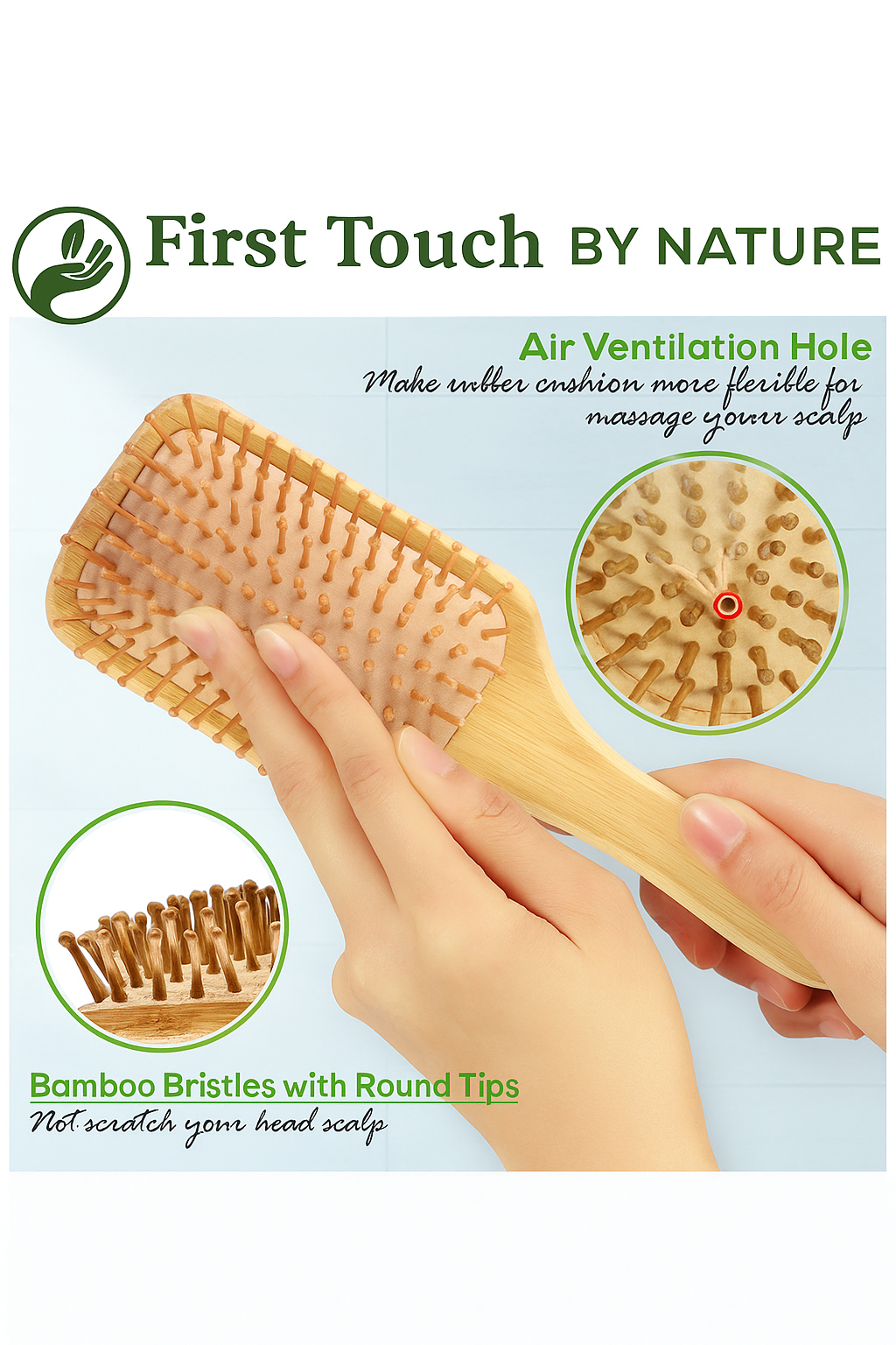 • 💆 Gentle Scalp Massage – Rounded bamboo bristles stimulate circulation and relax the scalp.