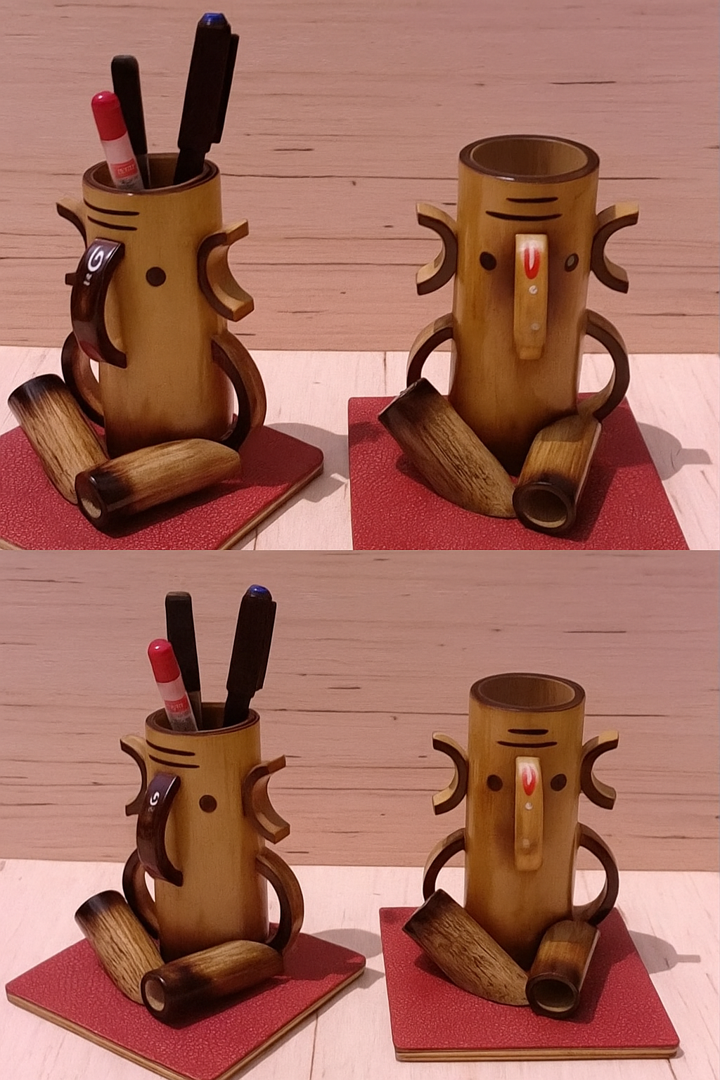 🌿 Handmade Bamboo Elephant Pen Stand – Eco-Friendly Desk Organizer