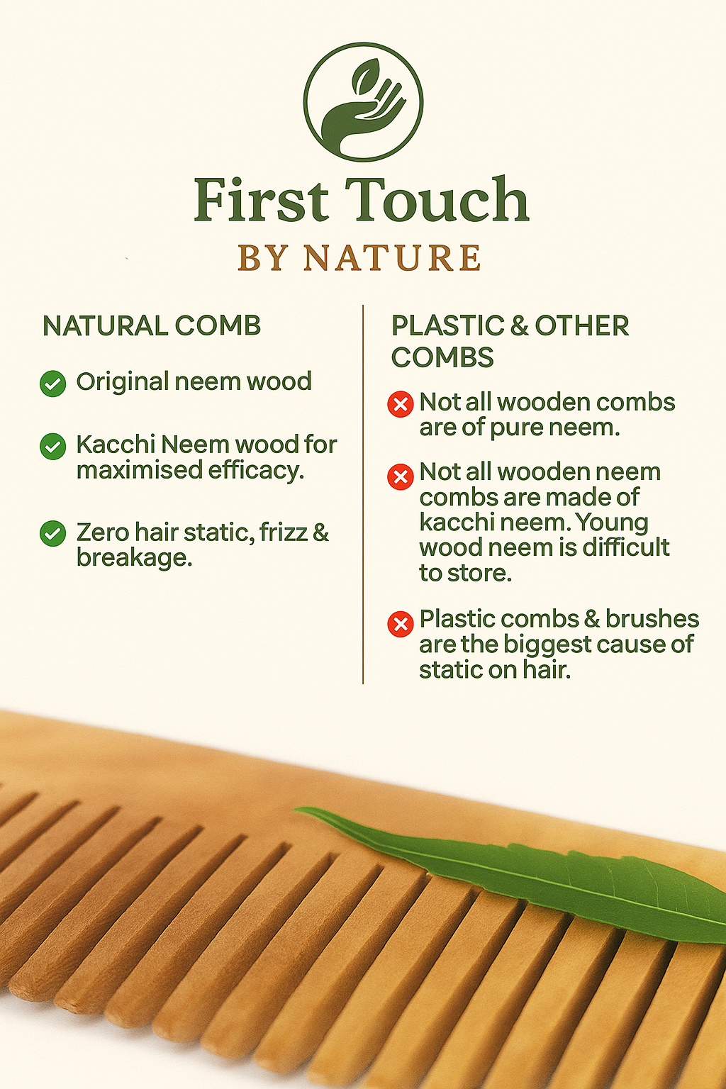 Natural Antibacterial Properties β Neem wood helps prevent dandruff and scalp infections.
