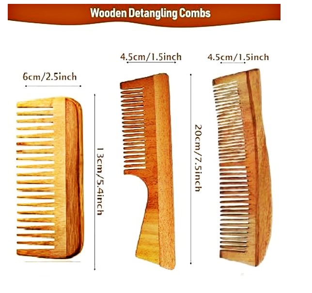 Neem Wooden Comb Set for Women & Men | Wooden combs combo Hair Comb Set | Kachi neem comb for Women for Hair Growth | Dandruff remover comb Neem Wood Kangi for Hair (Pack of 3)